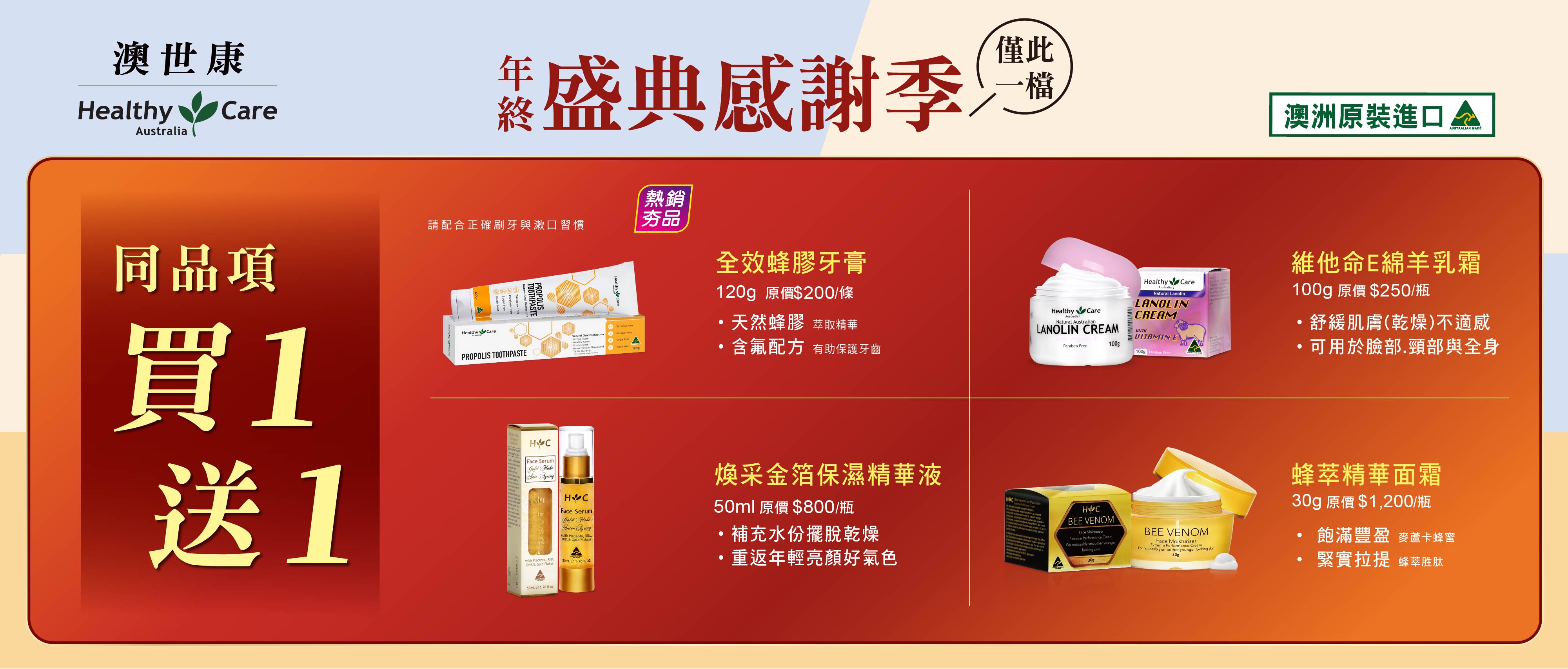 即日起~ 2021/5/31 止,至維康門市購買「澳世康-煥采金箔保濕精華液」買 1 送 1 ,讓維康來呵護醫護天使的肌膚!